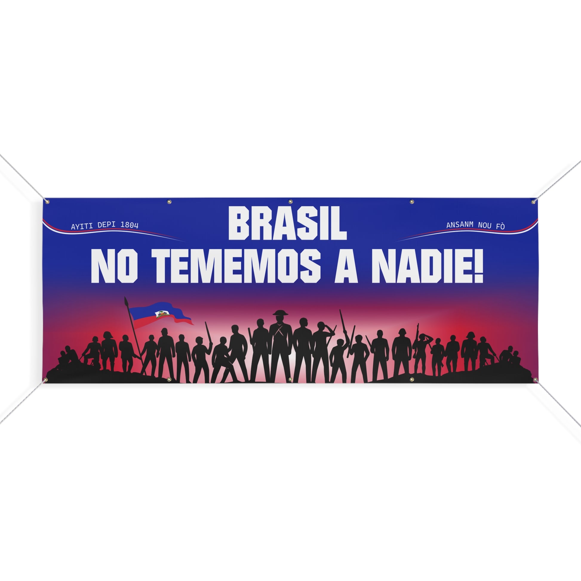 Inspirée par l’esprit de 1804, par la résilience d’un peuple et par l’énergie des tribunes, cette bannière transforme n’importe quel espace en territoire haïtien.