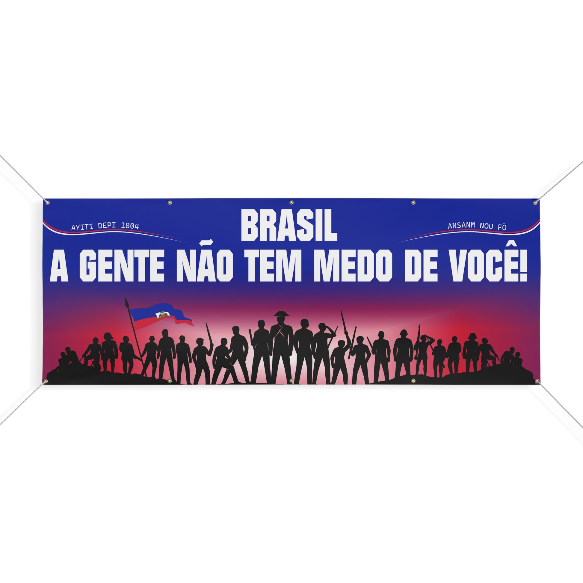 Les œillets en laiton et les cordes incluses permettent une installation rapide, solide et sécurisée — parce qu’un message comme celui-ci doit être vu, pas tenu à la main timidement.